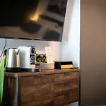 Este apartamento ofrece una cocina completa equipada con un horno de microondas, un hervidor eléctrico y utensilios de cocina y servicio de tetera/cafetera. La parada de autobús más cercana al Federnest - Luxus-Studio - Kingsize Boxspringbett - Home-Office Mit Monitor Und Drucker - 11 Min Hbf es Tausendfensterhaus, a 150 metros.