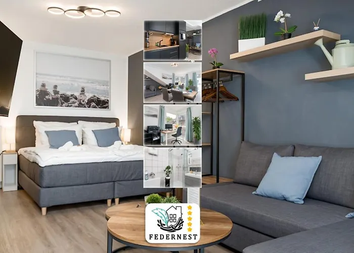 Disfruta de tus vacaciones en Duisburg en el Federnest - Luxus-Studio - Kingsize Boxspringbett - Home-Office Mit Monitor Und Drucker - 11 Min Hbf. Ideal para quienes buscan una experiencia auténtica, está situado a aproximadamente 5 minutos andando del Museo de la Radio de Duisburg y a alrededor de 25 minutos andando del Puerto interior de Duisburg. Este apartamento de 45 m^2 también dispone de Wi-Fi y un aparcamiento.